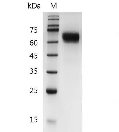 | Molecular Mass : | The protein has a calculated MW of 59.55 kDa. The protein migrates as 63-75 kDa under reducing condition (SDS-PAGE analysis). |