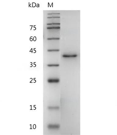 Molecular Mass : | The protein has a calculated MW of 35.64 kDa. The protein migrates as 45 kDa under reducing condition (SDS-PAGE analysis). |