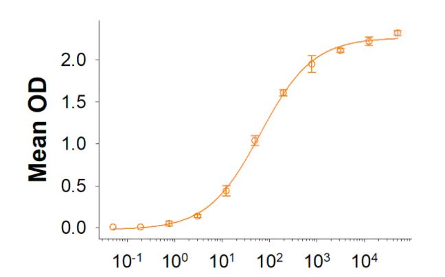 Measured by its binding ability in a functional ELISA. When Recombinant Human IL12 is immobilized at 1 μg/mL (100 μL/well), the concentration of Biotinylated Recombinant Human IL12RB1 Fc Chimera Avi-tag that produces 50% of the optimal binding response is found to be approximately 15-90 ng/mL. |
