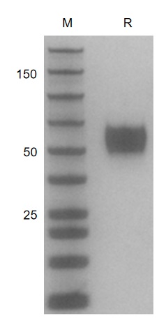Molecular Mass : | The protein has a calculated MW of 38kDa.The reducing (R) heterodimer protein migrates as 50-70 kDa due to glycosylation |