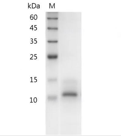 | Molecular Mass : | The protein has a calculated MW of 13.7 kDa. The protein migrates as 13 kDa under reducing condition (SDS-PAGE analysis). |