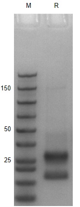 Molecular Mass : | The protein has a calculated MW of 15/17kDa.The reducing (R) heterodimer protein migrates as 15-20 kDa and 25-35 kDa due to glycosylation |