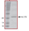 Interleukin 17D is a disulfide-linked homodimer belonging to the IL-17 family of proinflammatory cytokines. Members belonging to this family share conserved features of cysteine-knot structures but differ in their N-terminal regions. The T-helper cell produced IL17 family is inducible by IL15 and IL23, and IL17D induces expression of endothelial IL6, IL8, and GM-CSF, and inhibits hemopoiesis of myeloid progenitor cells. |