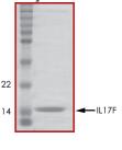 Interleukin 17F is a disulfide-linked homodimeric protein belonging to the IL-17 family of proinflammatory cytokines. Members belonging to this family share conserved features of cysteine-knot structures but differ in their N-terminal regions. The T-helper cell produced IL-17 family is inducible by IL15 and IL23, and IL17F induces T-cell and PBMC activation and proliferation. It also performs cartilage matrix turnover and angiogenesis prevention. Out of the IL-17 family, IL17F is the most homologous to IL17 and dimerizes in a way similar to that of nerve growth factors (NGF) and other neurotrophins. |