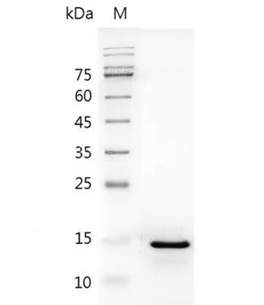| Molecular Mass : | The protein has a calculated MW of 18.2 kDa. The protein migrates as 15 kDa under reducing condition (SDS-PAGE analysis). |