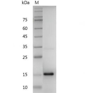 | Molecular Mass : | The protein has a calculated MW of 18.47 kDa. The protein migrates as 16 kDa under reducing condition (SDS-PAGE analysis). |