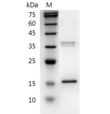 | Molecular Mass : | The protein has a calculated MW of 18.53 kDa. The protein migrates as 18 kDa under reducing condition (SDS-PAGE analysis). |
