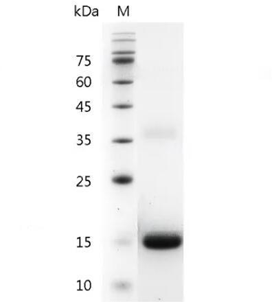 | Molecular Mass : | The protein has a calculated MW of 16.78 kDa. The protein migrates as 18 kDa under reducing condition (SDS-PAGE analysis). |
