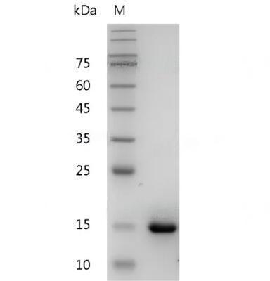 Molecular Mass : | The protein has a calculated MW of 18.05 kDa. The protein migrates as 17 kDa under reducing condition (SDS-PAGE analysis). |