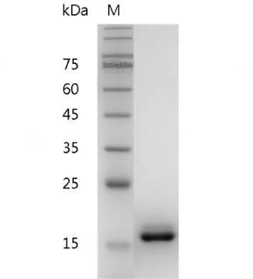 Molecular Mass : | The protein has a calculated MW of 17.77 kDa. The protein migrates as 17 kDa under reducing condition (SDS-PAGE analysis). |