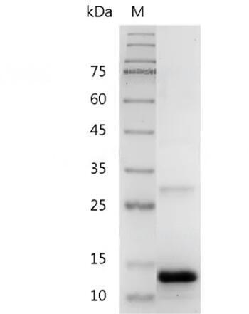 Molecular Mass : | The protein has a calculated MW of 13.75 kDa. The protein migrates as 17 kDa under reducing condition (SDS-PAGE analysis). |