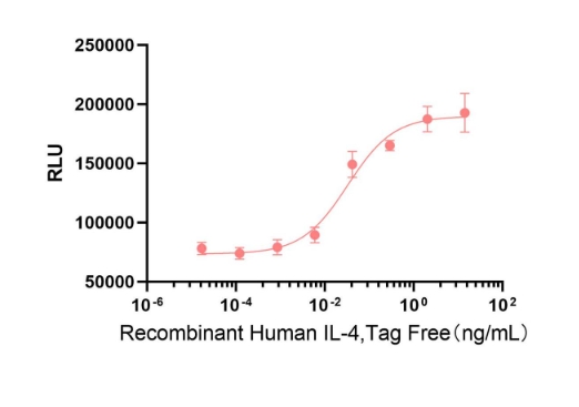 Cytokine secreted primarily by mast cells, T-cells, eosinophils, and basophils that plays a role in regulating antibody production, hematopoiesis and inflammation, and the development of effector T-cell responses. Induces the expression of class II MHC molecules on resting B-cells. Enhances both secretion and cell surface expression of IgE and IgG1. Regulates also the expression of the low affinity Fc receptor for IgE (CD23) on both lymphocytes and monocytes. Positively regulates IL31RA expression in macrophages. Stimulates autophagy in dendritic cells by interfering with mTORC1 signaling and through the induction of RUFY4. In addition, plays a critical role in higher functions of the normal brain, such as memory and learning. Upon binding to IL4, IL4R receptor dimerizes either with the common IL2R gamma chain/IL2RG to produce the type 1 signaling complex, located mainly on hematopoietic cells, or with the IL13RA1 to produce the type 2 complex, which is expressed also on nonhematopoietic cells. Engagement of both types of receptors initiates JAK3 and to a lower extend JAK1 phosphorylation leading to activation of the signal transducer and activator of transcription 6/STAT6. |