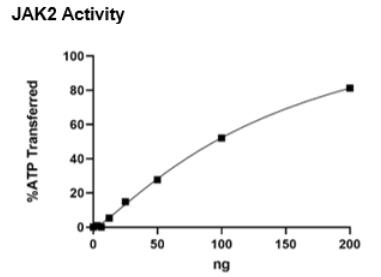 Assay was done according to JAK2 (Janus Kinase 2) Assay Kit with 20 μM ATP instead of 10 μM ATP and various amounts of JAK2 enzyme. |