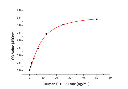 | Bio-activity : | 1.Measured by its binding ability in a functional ELISA. Immobilized recombinant human SCF at 1 μg/mL (100 μL/well) can bind recombinant human CD117 with a linear range of 1-6 ng/mL. 2.Measured by its binding ability in a functional ELISA. Immobilized Human SCF at 2 μg/mL (100 μL/well) can bind c-Kit/CD117 with a linear range of 0.049-9.11 ng/mL. |