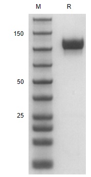 Molecular Mass : | The protein has a calculated MW of 82kDa.The reducing (R) heterodimer protein migrates as 110-140 kDa due to glycosylation |