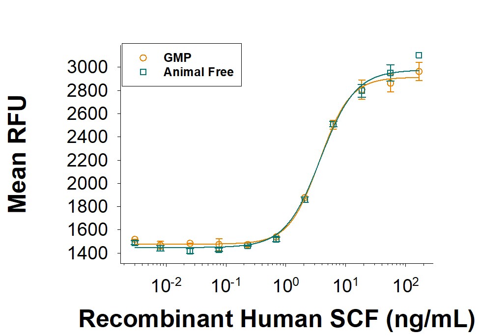 | Product Overview : | GMP recombinant human SCF protein (Glu26-Ala189) with an N-terminal Met was expressed in E. coli, produced using non-animal reagents in an Animal-Free laboratory and manufactured and tested under cGMP guidelines. |