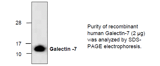 Product Overview : | Recombinant Human Galectin-7 is a 15.4 kDa protein consisting of 136 amino acid residues. |