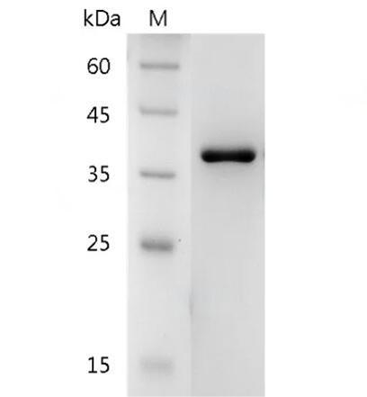 | Molecular Mass : | The protein has a calculated MW of 36.6 kDa. The protein migrates as 34 kDa under reducing condition (SDS-PAGE analysis). |