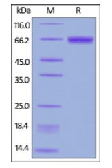 | Molecular Mass : | This protein carries a polyhistidine tag at the C-terminus.The protein has a calculated MW of 46.7 kDa. The protein migrates as 60-66 kDa under reducing (R) condition (SDS-PAGE) due to glycosylation. |