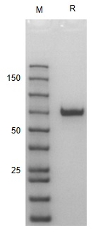 | Molecular Mass : | The protein has a calculated MW of 64kDa.The reducing (R) heterodimer protein migrates as 60-80 kDa due to glycosylation |