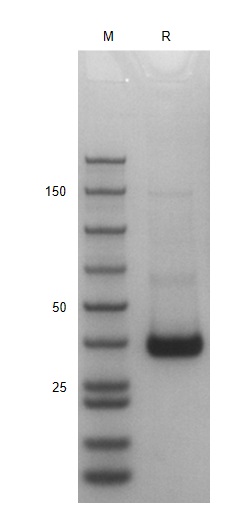 | Molecular Mass : | The protein has a calculated MW of 24 kDa.The reducing (R) heterodimer protein migrates as 25-35 kDa due to glycosylation |