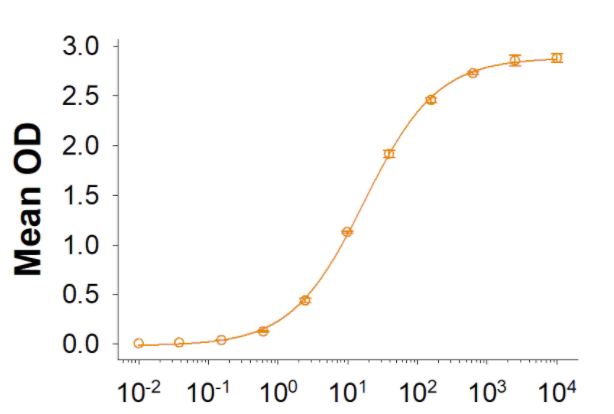 Measured by its binding ability in a functional ELISA. When Recombinant Human NKG2D Fc Chimera is immobilized at 1 μg/mL (100 µL/well), the concentration of Biotinylated Recombinant Human MICA Fc Chimera Avi-tag that produces 50% of the optimal binding response is found to be approximately 7.5-45 ng/mL. |