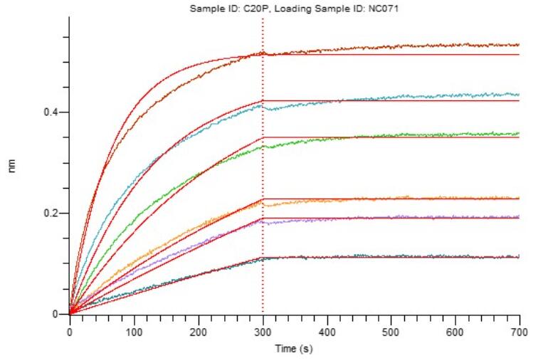 | Bio-activity : | Loaded Anti-Human CD20 mAb-Fc on AHC Biosensor, can bind Human CD20-His-Flag with an affinity constant of 1.3 pM as determined in BLI assay. |