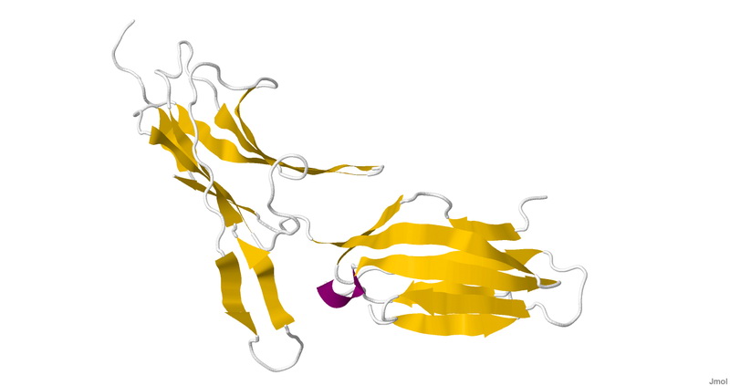| Description : | MADCAM1 is anapproximately 60 kDa type 1 transmembrane glycoprotein. It is an endothelialcell adhesion molecule that belongs to the immunoglobulin) superfamily ofproteins. Human MADCAM1 is synthesized as a 382 amino acid precursor thatcontains an 18 aa signal sequence, a 299 aa extracellular domain, a 21 aatransmembrane segment, and a 44 aa cytoplasmic tail. Within the ECD there isone potential site for N-linked glycosylation. The ECD comprises two Ig-likedomains of 90 aa and 119 aa, respectively, each possessing invariant cysteineresidues that stabilize the Ig loop. |