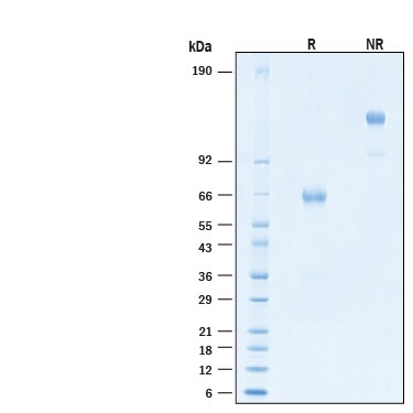 | Product Overview : | Recombinant human Alexa Fluor® 647 conjugated PD-1 (Leu25-Gln167) protein with human IgG1 (Pro100-Lys330) Fc tag at C-terminus was expressed in mouse myeloma cell line. |