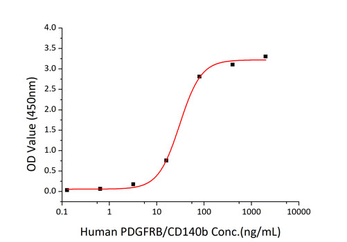 | Bio-activity : | Measured by its binding ability in a functional ELISA. Immobilized recombinant Human PDGF-B at 2 μg/mL (100 μL/well) can bind recombinant Human PDGFRB. The EC50 of Human PDGFRB is 30.48 ng/mL. |