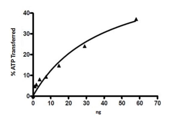 | Bio-activity : | Assay performed in Tris-buffered solution containing Mg2+ with 1 mM DTT using AMARA peptide as a substrate (0.1 mg/mL), 20μM ATP and 100μM AMP. Reaction was done at 30 centigrade for 45 min. Amount of ATP transferred was calculated using via luminescent assay. |