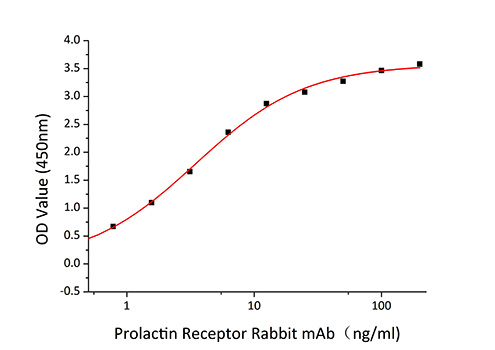 | Bio-activity : | Measured by its binding ability in a functional ELISA. Immobilized Human PRLR/Prolactin Receptor at 1 μg/mL (100 μL/well) can bind Prolactin Receptor Rabbit mAb with a linear range of 0.67-3.45 ng/mL. |