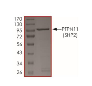The protein encoded by this gene is a member of the protein tyrosine phosphatase (PTP) family. PTPs are known to be signaling molecules that regulate a variety of cellular processes including cell growth, differentiation, mitotic cycle, and oncogenic transformation. This PTP contains two tandem Src homology-2 domains, which function as phospho-tyrosine binding domains and mediate the interaction of this PTP with its substrates. This PTP is widely expressed in most tissues and plays a regulatory role in various cell signaling events that are important for a diversity of cell functions, such as mitogenic activation, metabolic control, transcription regulation, and cell migration. Mutations in this gene are a cause of Noonan syndrome as well as acute myeloid leukemia. |