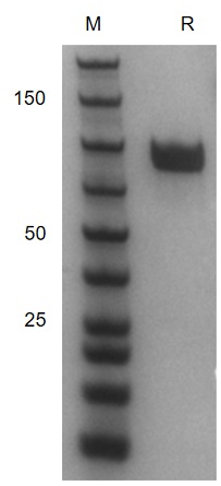 | Molecular Mass : | The protein has a calculated MW of 73kDa.The reducing (R) heterodimer protein migrates as 70-100 kDa due to glycosylation |