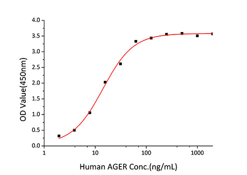 | Bio-activity : | Measured by its binding ability in a functional ELISA. Immobilized Human S100A12 Protein at 2 μg/mL (100 μL/well) can bind AGER with a linear range of 1.95-14.13 ng/mL. |