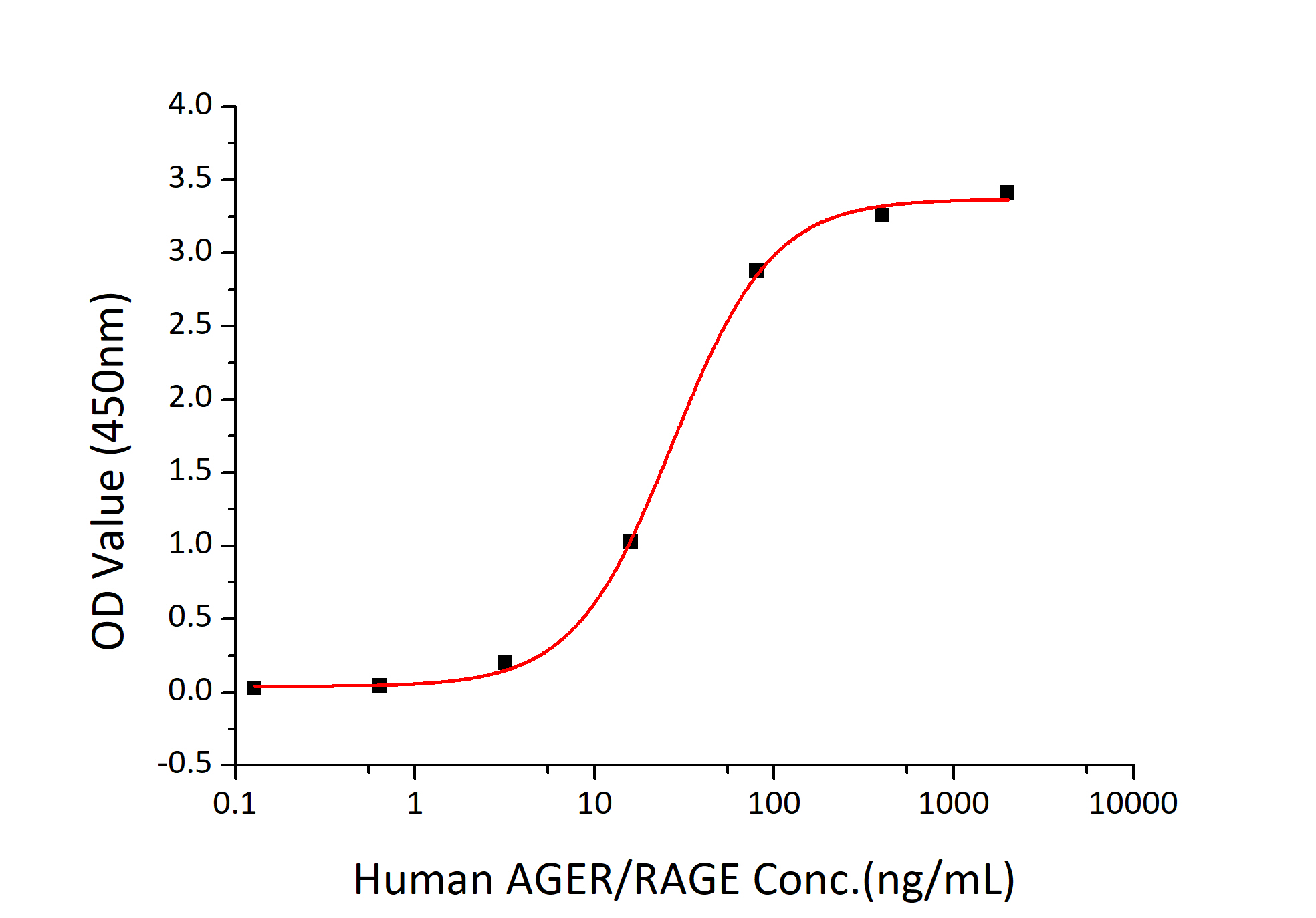 | Bio-activity : | Measured by its binding ability in a functional ELISA. Immobilized Human S100A12 at 2 μg/mL (100 μL/well) can bind recombinant Human AGER/RAGE with a linear range of 0.1-27.25 ng/mL. |