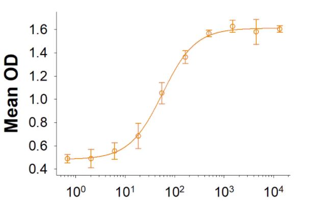CD2-like receptor activating cytotoxic cells (CRACC), also known as CS1, novel Ly9, SLAMF7, and CD319, is a type I transmembrane glycoprotein in the SLAM subgroup of the CD2 family (1). Mature human CRACC consists of an extracellular domain (ECD) with one Ig-like V-set domain and one Ig-like C2-set domain, a transmembrane segment, and a cytoplasmic domain with one immunoreceptor tyrosine-based switch motif (ITSM) (2, 3). Within the ECD, human CRACC shares 54% and 52% amino acid sequence identity with mouse and rat CRACC, respectively. There are seven known isoforms of CRACC which are distinguished by deletions and/or substitutions in both their ECD and cytoplasmic domains. CRACC is expressed on the surface of NK cells, CD8+ T cells, activated B cells, and mature dendritic cells (4, 5). Its homophilic interaction induces NK, CTL, and B cell activation (4-7). In human NK cells, activated CRACC transmits signals following association with the adaptor protein EAT-2 (8).Our Avi-tag Biotinylated Recombinant Human CRACC/SLAMF7 features biotinylation at a single site contained within the Avi-tag, a unique 15 amino acid peptide. Protein orientation will be uniform when bound to streptavidin-coated surface due to the precise control of biotinylation and the rest of the protein is unchanged so there is no interference in the protein's bioactivity. |