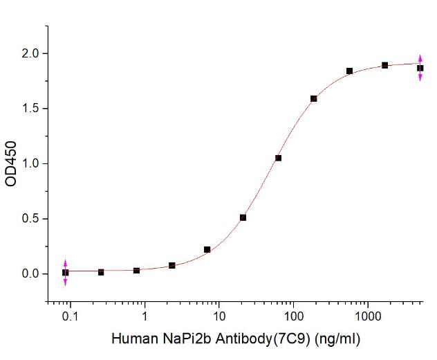 | Bio-activity : | Immobilized Human NaPi2b ECL2-Fc at 2μg/ml (100 μl/well) can bind Human NaPi2b Antibody(7C9): Biotinylated by NHS-biotin prior to testing. The ED50 of Human NaPi2b Antibody(7C9) is 50.90 ng/ml. (Regularly tested) |
