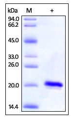 Molecular Mass : | This protein carries a polyhistidine tag at the N-terminusThe protein has a calculated MW of 16.8 kDa. The protein migrates as 19-21 kDa under reducing (R) condition (SDS-PAGE). |