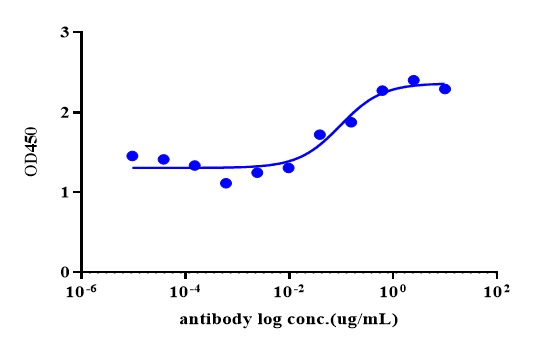 | Bio-activity : | When Recombinant Human Cripto/hFC Protein is immobilized at 2µg/mL (100 µL/well), the concentration of Anti Human Cripto Antibody(clone B3F6) that produces 50% of the optimal binding response is approximately 90 ng/ml. |