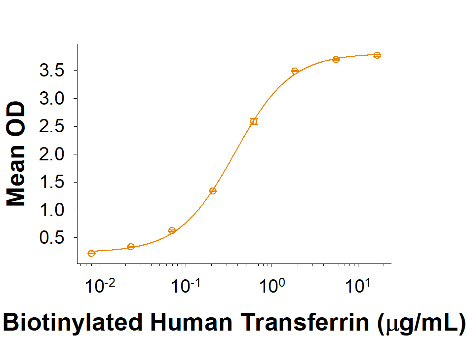 | Bio-activity : | Measured by its binding ability in a functional ELISA. In a Goat Anti-Human IgG Fc Antibody coated plate, Recombinant Human TfR2 Fc Chimera binds to Biotinylated Human Transferrin with an ED50 of 0.1-0.6 μg/mL. |