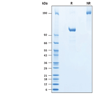 | Product Overview : | Recombinant Human TFR2 Protein (Gly112-Phe801) with Human IgG1 (Pro100-Lys330) Fc tag at N-terminus was expressed in Chinese Hamster Ovary cell line. |