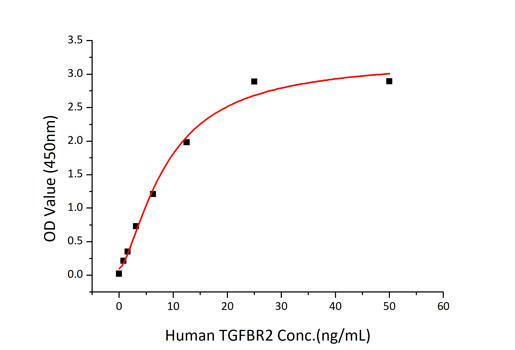 | Bio-activity : | Measured by its binding ability in a functional ELISA. Immobilized recombinant human TGFB1 at 2 μg/mL (100 μL/well) can bind recombinant human TGFBR2 with a linear range of 1-5 ng/mL. |