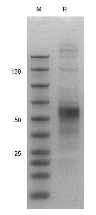 | Molecular Mass : | The protein has a calculated MW of 43 kDa.The reducing (R) heterodimer protein migrates as 50-70 kDa due to glycosylation |
