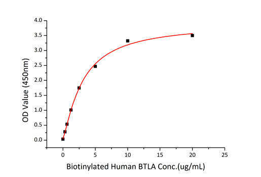 | Bio-activity : | Measured by its binding ability in a functional ELISA. Immobilized Recombinant human HVEM at 5 μg/mL (100 μL/well) can bind Biotinylated Recombinant human BTLA with a linear range of 1.5-6 μg/mL. |