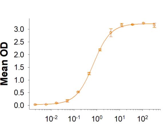 Measured by its binding ability in a functional ELISA. When Recombinant Human TNFSF13 is immobilized at 0.1 µg/mL (100 µL/well), Recombinant Human TNFRSF17 Fc Chimera Avi-tag binds with an ED50 of 0.3-1.8 ng/mL. |