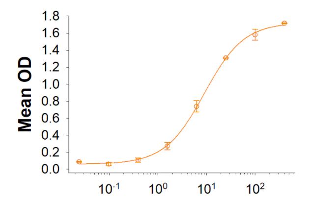 Measured by its binding ability in a functional ELISA. When Recombinant Human TNFSF8 is immobilized at 0.25 μg/mL (100 μL/well), the concentration of Biotinylated Recombinant Human TNFRSF8 Fc Chimera Avi-tag that produces 50% of the optimal binding response is 3-15 ng/mL. |