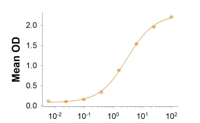 | Bio-activity : | Measured by its binding ability in a functional ELISA. When Recombinant Human TNFSF8 is immobilized at 0.25 μg/mL (100 μL/well), the concentration of Biotinylated Recombinant Human TNFRSF8 His-tag Avi-tag that produces 50% of the optimal binding response is 2-10 ng/mL. |