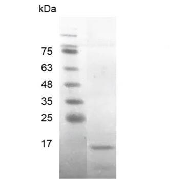 | Molecular Mass : | The protein has a calculated MW of 20.30 kDa. The protein migrates as 17 kDa under reducing condition (SDS-PAGE analysis). |