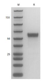 Molecular Mass : | This protein carries a polyhistidine tag at the N-terminus, followed by a flag tagThe protein has a calculated MW of 62.8 kDa. The protein migrates as 55-60 kDa under non-reducing (NR) condition (SDS-PAGE). |
